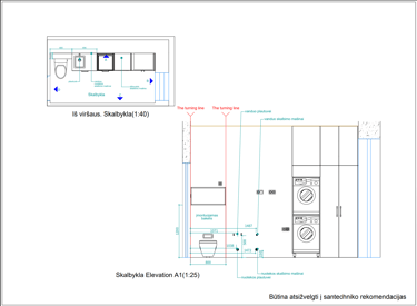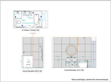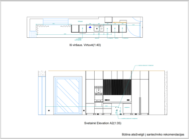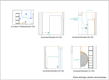 Užbaigus vizualinę dalį, paruošti elektros lizdų ir jungtukų planas, vandens taškų planas.