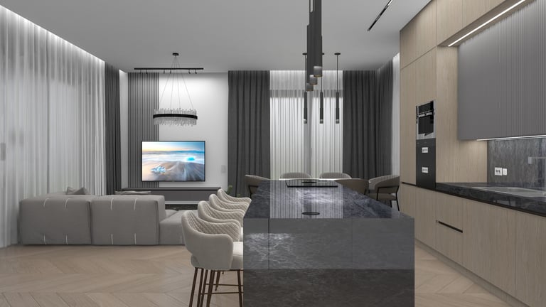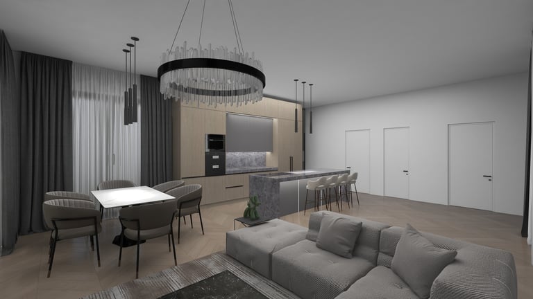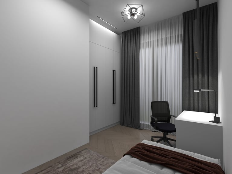 Pateikus pirmines vizualizacijas, kurios buvo paruoštos tiksliai pagal pirmines užsakovo idėjas, jos nepatiko. Todėl padaryti baldų dydžių, akcentų ir spalviniai pakeitimai.